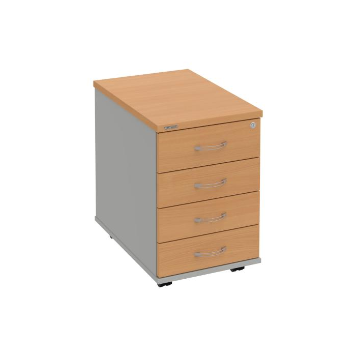 Kontajnery - všetko uložené a vždy poruke. Kontajnery sa väčšinou umiestňujú pod stoly. Mobilné modely sú vybavené kolieskami, je možné ich premiestniť podľa potreby. Základným materiálom korpusov je kvalitná laminovaná drevotriesková doska hrúbky 18 mm. Pre dlhšiu životnosť je na horný diel korpusu použitá doska, ktorej hrúbka je 25 mm. Korpusy a čelá zásuviek sú chránené proti poškodeniu hranou ABS 2 mm. Kontajnery sú vybavené zámkom s centrálnym zamykaním. Vďaka integrovanému systému STOP-CONTROL s centrálnym zámkom u väčšiny kontajnerov sa nemusíte báť prevrhnutiu kontajnera alebo prípadného privretia ruky. Systém zaručí, že pri otvorení jednej zásuvky sa ostatné zásuvky automaticky zablokujú. Zásuvky sú z plastu, ktorý je ľahko umývateľný a vhodný pre jednoduchú údržbu. Praktickou súčasťou vrchnej zásuvky je prehľadný organizér a priestorové deliace priečky. Vaše ceruzky, sponky a ďalšie kancelárske potreby budú vždy na poriadku. Organizér a deliace priečky sú súčasťou každého kontajnera. Na kontajnery Hobis sa vzťahuje päťročná záruka.