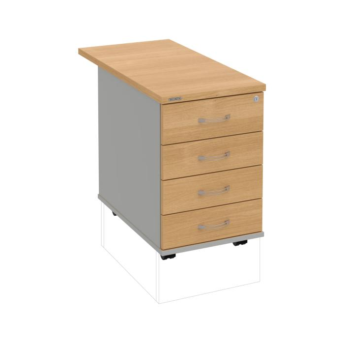 Kontajnery - všetko uložené a vždy poruke. Kontajnery sa väčšinou umiestňujú pod stoly. Mobilné modely sú vybavené kolieskami, je možné ich premiestniť podľa potreby. Základným materiálom korpusov je kvalitná laminovaná drevotriesková doska hrúbky 18 mm. Pre dlhšiu životnosť je na horný diel korpusu použitá doska, ktorej hrúbka je 25 mm. Korpusy a čelá zásuviek sú chránené proti poškodeniu hranou ABS 2 mm. Horná doska ma hĺbku 80 cm. Kontajnery sú vybavené zámkom s centrálnym zamykaním. Vďaka integrovanému systému STOP-CONTROL s centrálnym zámkom u väčšiny kontajnerov sa nemusíte báť prevrhnutiu kontajnera alebo prípadného privretia ruky. Systém zaručí, že pri otvorení jednej zásuvky sa ostatné zásuvky automaticky zablokujú. Zásuvky sú z plastu, ktorý je ľahko umývateľný a vhodný pre jednoduchú údržbu. Praktickou súčasťou vrchnej zásuvky je prehľadný organizér a priestorové deliace priečky. Vaše ceruzky, sponky a ďalšie kancelárske potreby budú vždy na poriadku. Organizér a deliace priečky sú súčasťou každého kontajnera. Na kontajnery Hobis sa vzťahuje päťročná záruka.