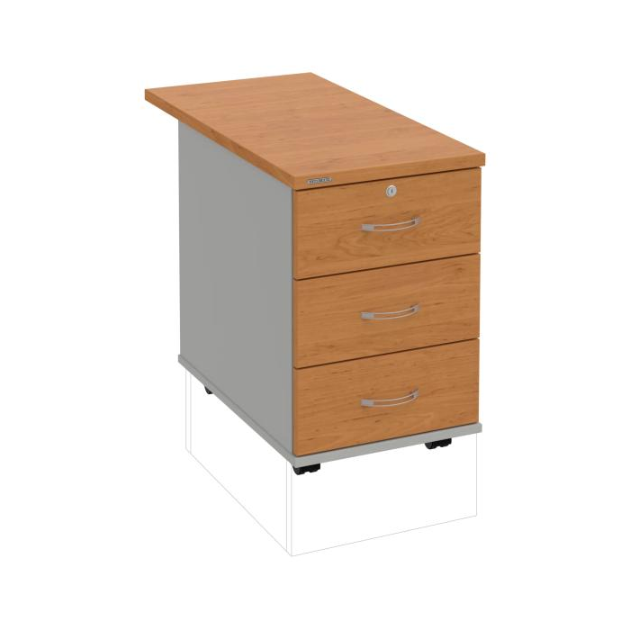 Kontajnery - všetko uložené a vždy poruke. Kontajnery sa väčšinou umiestňujú pod stoly. Mobilné modely sú vybavené kolieskami, je možné ich premiestniť podľa potreby. Základným materiálom korpusov je kvalitná laminovaná drevotriesková doska hrúbky 18 mm. Pre dlhšiu životnosť je na horný diel korpusu použitá doska, ktorej hrúbka je 25 mm. Korpusy a čelá zásuviek sú chránené proti poškodeniu hranou ABS 2 mm. Horná doska ma hĺbku 80. 3-zásuvkový kontajner má uzamykatelnú iba 1 zásuvku. Zásuvky sú z plastu, ktorý je ľahko umývateľný a vhodný pre jednoduchú údržbu. Praktickou súčasťou vrchnej zásuvky je prehľadný organizér a priestorové deliace priečky. Vaše ceruzky, sponky a ďalšie kancelárske potreby budú vždy na poriadku. Organizér a deliace priečky sú súčasťou každého kontajnera. Na kontajnery Hobis sa vzťahuje päťročná záruka.