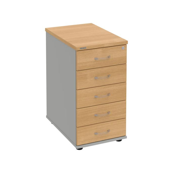 Kontajnery - všetko uložené a vždy poruke. Kontajnery sa väčšinou umiestňujú pod stoly. Mobilné modely sú vybavené kolieskami, je možné ich premiestniť podľa potreby. Základným materiálom korpusov je kvalitná laminovaná drevotriesková doska hrúbky 18 mm. Pre dlhšiu životnosť je na horný diel korpusu použitá doska, ktorej hrúbka je 25 mm. Korpusy a čelá zásuviek sú chránené proti poškodeniu hranou ABS 2 mm. Kontajnery sú vybavené zámkom s centrálnym zamykaním. Vďaka integrovanému systému STOP-CONTROL s centrálnym zámkom u väčšiny kontajnerov sa nemusíte báť prevrhnutiu kontajnera alebo prípadného privretia ruky. Systém zaručí, že pri otvorení jednej zásuvky sa ostatné zásuvky automaticky zablokujú. Zásuvky sú z plastu, ktorý je ľahko umývateľný a vhodný pre jednoduchú údržbu. Praktickou súčasťou vrchnej zásuvky je prehľadný organizér a priestorové deliace priečky. Vaše ceruzky, sponky a ďalšie kancelárske potreby budú vždy na poriadku. Organizér a deliace priečky sú súčasťou každého kontajnera. Na kontajnery Hobis sa vzťahuje päťročná záruka.