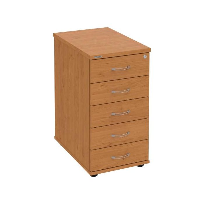 Kontajnery - všetko uložené a vždy poruke. Kontajnery sa väčšinou umiestňujú pod stoly. Mobilné modely sú vybavené kolieskami, je možné ich premiestniť podľa potreby. Základným materiálom korpusov je kvalitná laminovaná drevotriesková doska hrúbky 18 mm. Pre dlhšiu životnosť je na horný diel korpusu použitá doska, ktorej hrúbka je 25 mm. Korpusy a čelá zásuviek sú chránené proti poškodeniu hranou ABS 2 mm. Kontajnery sú vybavené zámkom s centrálnym zamykaním. Vďaka integrovanému systému STOP-CONTROL s centrálnym zámkom u väčšiny kontajnerov sa nemusíte báť prevrhnutiu kontajnera alebo prípadného privretia ruky. Systém zaručí, že pri otvorení jednej zásuvky sa ostatné zásuvky automaticky zablokujú. Zásuvky sú z plastu, ktorý je ľahko umývateľný a vhodný pre jednoduchú údržbu. Praktickou súčasťou vrchnej zásuvky je prehľadný organizér a priestorové deliace priečky. Vaše ceruzky, sponky a ďalšie kancelárske potreby budú vždy na poriadku. Organizér a deliace priečky sú súčasťou každého kontajnera. Na kontajnery Hobis sa vzťahuje päťročná záruka.