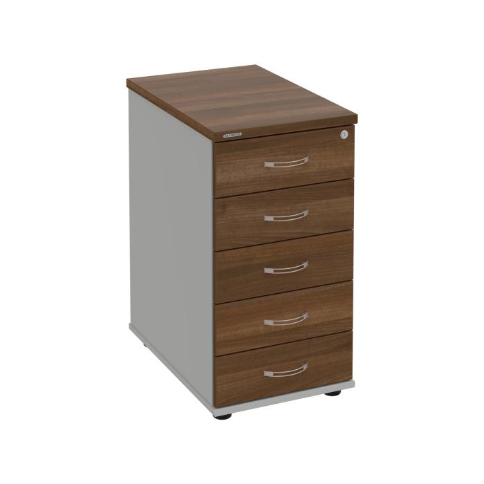 Kontajnery - všetko uložené a vždy poruke. Kontajnery sa väčšinou umiestňujú pod stoly. Mobilné modely sú vybavené kolieskami, je možné ich premiestniť podľa potreby. Základným materiálom korpusov je kvalitná laminovaná drevotriesková doska hrúbky 18 mm. Pre dlhšiu životnosť je na horný diel korpusu použitá doska, ktorej hrúbka je 25 mm. Korpusy a čelá zásuviek sú chránené proti poškodeniu hranou ABS 2 mm. Kontajnery sú vybavené zámkom s centrálnym zamykaním. Vďaka integrovanému systému STOP-CONTROL s centrálnym zámkom u väčšiny kontajnerov sa nemusíte báť prevrhnutiu kontajnera alebo prípadného privretia ruky. Systém zaručí, že pri otvorení jednej zásuvky sa ostatné zásuvky automaticky zablokujú. Zásuvky sú z plastu, ktorý je ľahko umývateľný a vhodný pre jednoduchú údržbu. Praktickou súčasťou vrchnej zásuvky je prehľadný organizér a priestorové deliace priečky. Vaše ceruzky, sponky a ďalšie kancelárske potreby budú vždy na poriadku. Organizér a deliace priečky sú súčasťou každého kontajnera. Na kontajnery Hobis sa vzťahuje päťročná záruka.