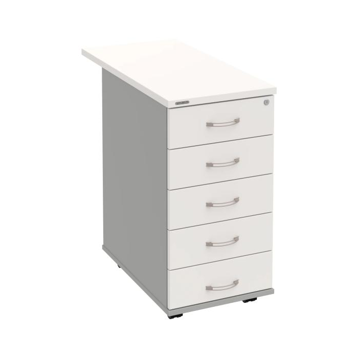 Kontajnery - všetko uložené a vždy poruke. Kontajnery sa väčšinou umiestňujú pod stoly. Mobilné modely sú vybavené kolieskami, je možné ich premiestniť podľa potreby. Základným materiálom korpusov je kvalitná laminovaná drevotriesková doska hrúbky 18 mm. Pre dlhšiu životnosť je na horný diel korpusu použitá doska, ktorej hrúbka je 25 mm. Korpusy a čelá zásuviek sú chránené proti poškodeniu hranou ABS 2 mm. Horná doska ma hĺbku 80 cm. Kontajnery sú vybavené zámkom s centrálnym zamykaním. Vďaka integrovanému systému STOP-CONTROL s centrálnym zámkom u väčšiny kontajnerov sa nemusíte báť prevrhnutiu kontajnera alebo prípadného privretia ruky. Systém zaručí, že pri otvorení jednej zásuvky sa ostatné zásuvky automaticky zablokujú. Zásuvky sú z plastu, ktorý je ľahko umývateľný a vhodný pre jednoduchú údržbu. Praktickou súčasťou vrchnej zásuvky je prehľadný organizér a priestorové deliace priečky. Vaše ceruzky, sponky a ďalšie kancelárske potreby budú vždy na poriadku. Organizér a deliace priečky sú súčasťou každého kontajnera. Na kontajnery Hobis sa vzťahuje päťročná záruka.