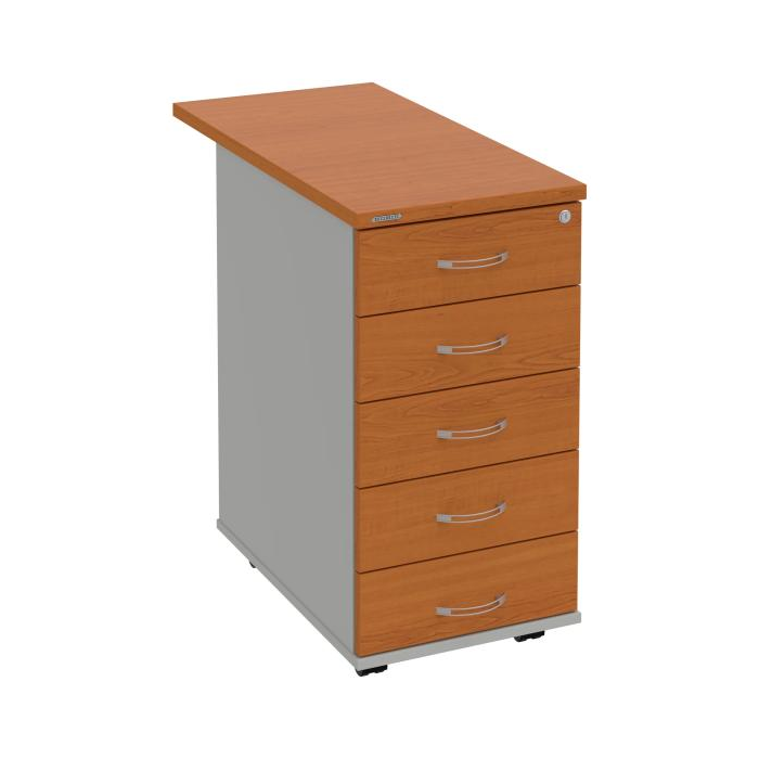 Kontajnery - všetko uložené a vždy poruke. Kontajnery sa väčšinou umiestňujú pod stoly. Mobilné modely sú vybavené kolieskami, je možné ich premiestniť podľa potreby. Základným materiálom korpusov je kvalitná laminovaná drevotriesková doska hrúbky 18 mm. Pre dlhšiu životnosť je na horný diel korpusu použitá doska, ktorej hrúbka je 25 mm. Korpusy a čelá zásuviek sú chránené proti poškodeniu hranou ABS 2 mm. Horná doska ma hĺbku 80 cm. Kontajnery sú vybavené zámkom s centrálnym zamykaním. Vďaka integrovanému systému STOP-CONTROL s centrálnym zámkom u väčšiny kontajnerov sa nemusíte báť prevrhnutiu kontajnera alebo prípadného privretia ruky. Systém zaručí, že pri otvorení jednej zásuvky sa ostatné zásuvky automaticky zablokujú. Zásuvky sú z plastu, ktorý je ľahko umývateľný a vhodný pre jednoduchú údržbu. Praktickou súčasťou vrchnej zásuvky je prehľadný organizér a priestorové deliace priečky. Vaše ceruzky, sponky a ďalšie kancelárske potreby budú vždy na poriadku. Organizér a deliace priečky sú súčasťou každého kontajnera. Na kontajnery Hobis sa vzťahuje päťročná záruka.