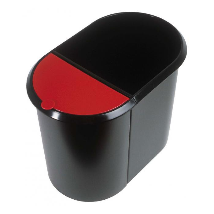Plastový kôš s možnosťou triedenia papierového odpadu od iného, napr. mokrého odpadu, uzavretého vekom. Objem koša na papier 20 l, objem vložky 9 l, výška 350 mm. Farba koša čierna, vložka červená.