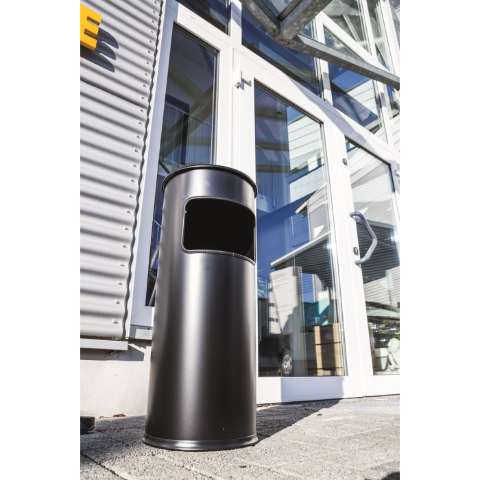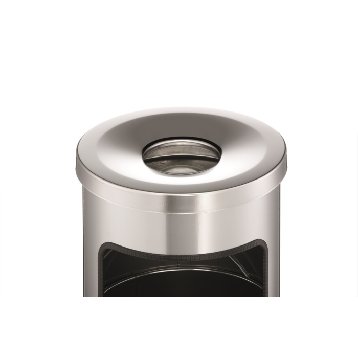 Kovový kôš na odpadky a popolník v jednom. Vhodný na použitie do interiéru aj exteriéru. Bezpečnostné samohasiace hliníkové veko. Objem koša 17 l, výška 630 mm, priemer 250 mm. Objem popolníka 2 l, výška 60 mm, priemer 240 mm.