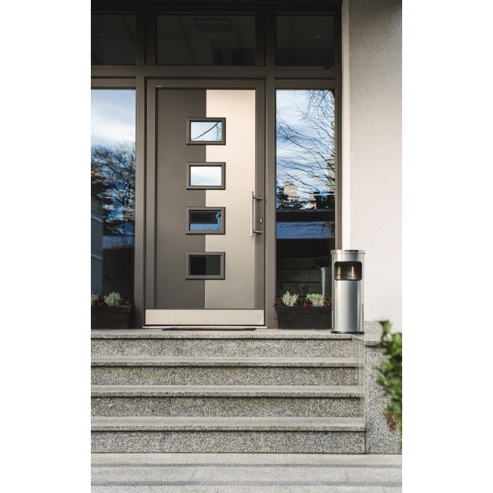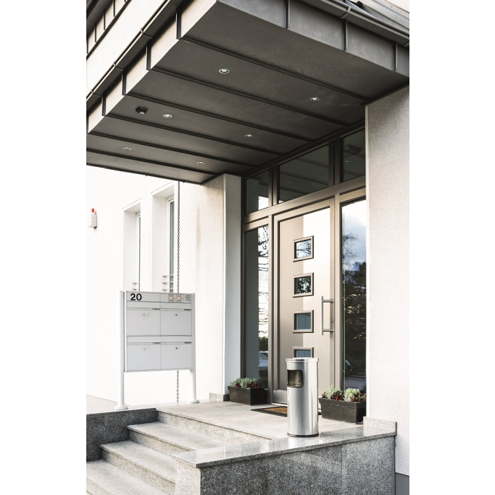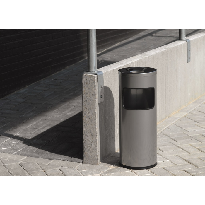 Smetný kôš na papier a popolník v jednom. Objem koša 17 l, výška 630 mm, priemer 250 mm. Objem popolníka 2 l, výška 60 mm, priemer 240 mm.