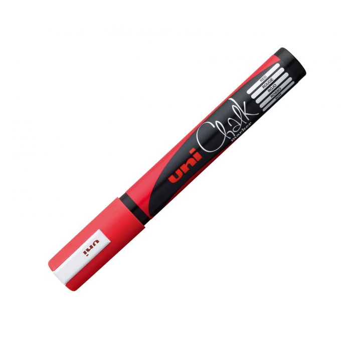 Kriedové popisovače s možnosťou použitia pre priemysel, dekoráciu, informačné tabule a hobby. Na čistých a odmastených neporéznych povrchoch text po zaschnutí odoláva vode a UV, ale je stierateľný vlhkou handričkou. Vhodné na okná, zrkadlá, kovové a plastové povrchy. Hrot guľatý, šírka stopy 1,8 - 2,5 mm. Farba neónovočervená.