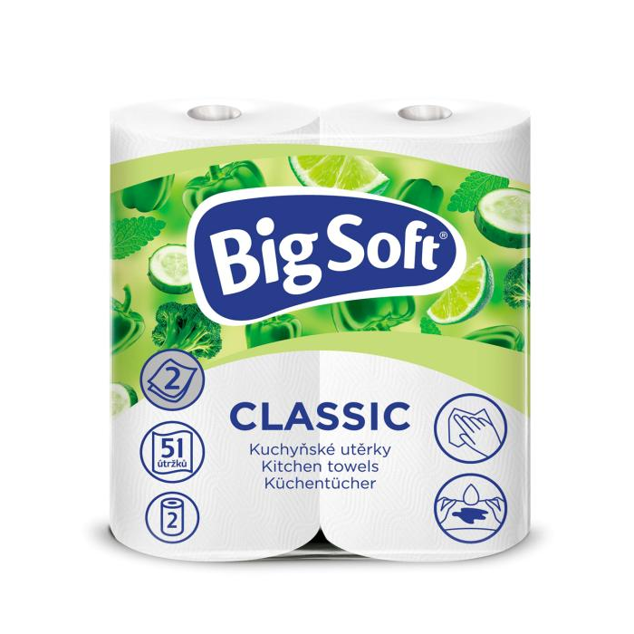Kuchynské utierky 2-vrstvové Big Soft Classic 2ks, 10,5m