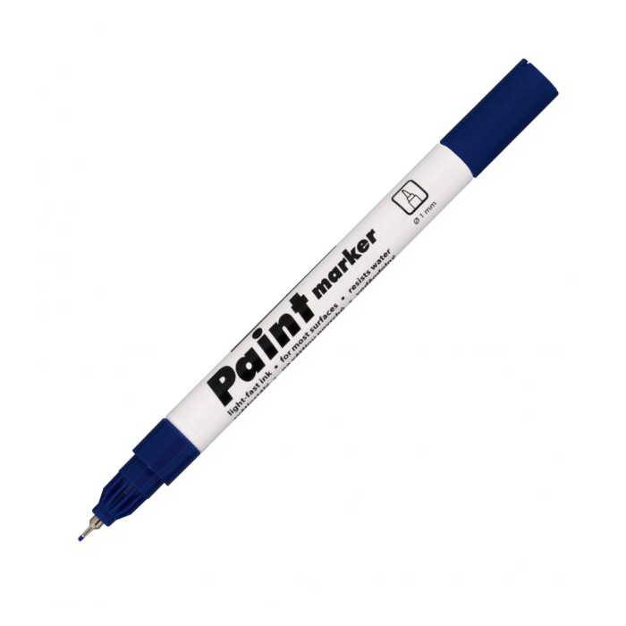 Lakový popisovač s plastovým hrotom v kovovej objímke píše na neporézne povrchy. Svetlostály atrament po zaschnutí odolá vode, poveternostným vplyvom aj oderu. Šírka stopy 0,7 mm. Väčšie balenie 10 ks v jednej farbe. Farba modrá.