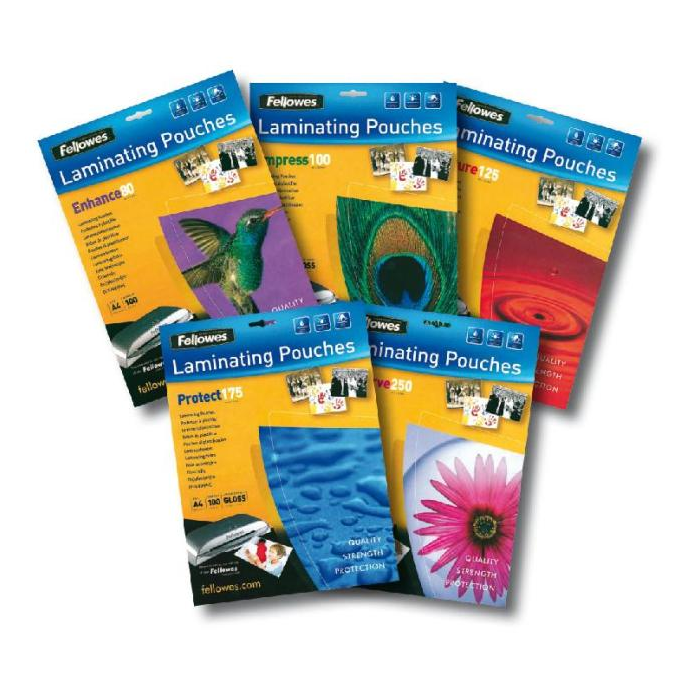 Laminovacie fólie Fellowes kvalitne a dlhodobo ochránia dokumenty pred znehodnotením a vplyvmi prostredia. Vyznačujú sa priezračnosťou a nízkou teplotou potrebnou na laminovanie.