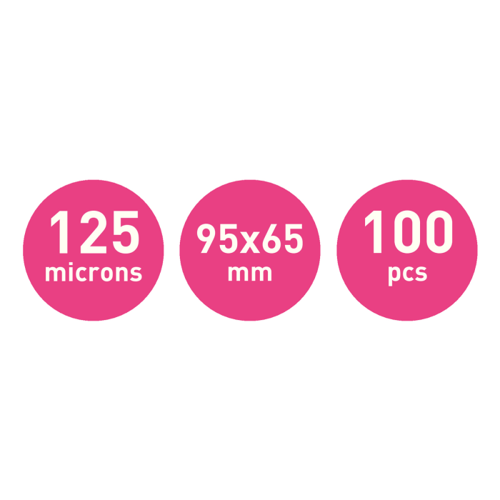 Pre lamináciu malých dokumentov veľkosti karty. Perfektná ochrana veľmi často používaných vernostných kariet, visačiek, menoviek atp.