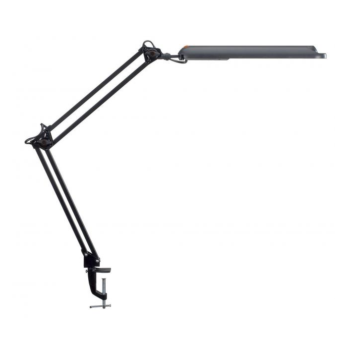 Lampa so svorkou energeticky úspornej triedy „A“ s LED žiarovkami so životnosťou cez 20 000 hodín bez možnosti ich výmeny. Svietivosť 2 000 luxov pri vzdialenosti 35 cm od stola, svetelný tok 400 lumenov, extrémne nízka spotreba energie cca 9 kWh/ 1 000 h. Sklopná a otočná plastová svetelná hlava. Veľkosť hlavy cca 33 × 7 cm, kovový úchyt na stôl do hrúbky 5,5 cm. Materiál kov a plast. Dĺžka spodného ramena 33 cm, horného 34 cm, výška normálnej pracovnej pozície 42 cm, dĺžka kábla 1,8 m. Farba čierna.