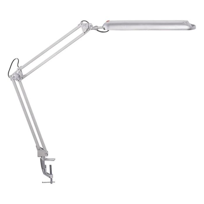 Lampa so svorkou energeticky úspornej triedy „A“ s LED žiarovkami so životnosťou cez 20 000 hodín bez možnosti ich výmeny. Svietivosť 2 000 luxov pri vzdialenosti 35 cm od stola, svetelný tok 400 lumenov, extrémne nízka spotreba energie cca 9 kWh/ 1 000 h. Sklopná a otočná plastová svetelná hlava. Veľkosť hlavy cca 33 × 7 cm, kovový úchyt na stôl do hrúbky 5,5 cm. Materiál kov a plast. Dĺžka spodného ramena 33 cm, horného 34 cm, výška normálnej pracovnej pozície 42 cm, dĺžka kábla 1,8 m. Farba strieborná.