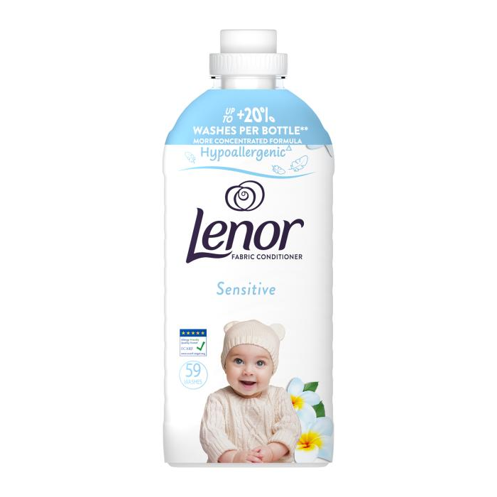 Hypoalergénna aviváž Lenor Sensitive poskytuje neutrálnu vôňu a nebeskú hebkosť. Zloženie je určené na citlivú pokožku, dermatologicky testované (test vykonaný na pokožke v kontakte s vypranou látkou) a certifikované Európskym centrom pre výskum alergií ECARF.