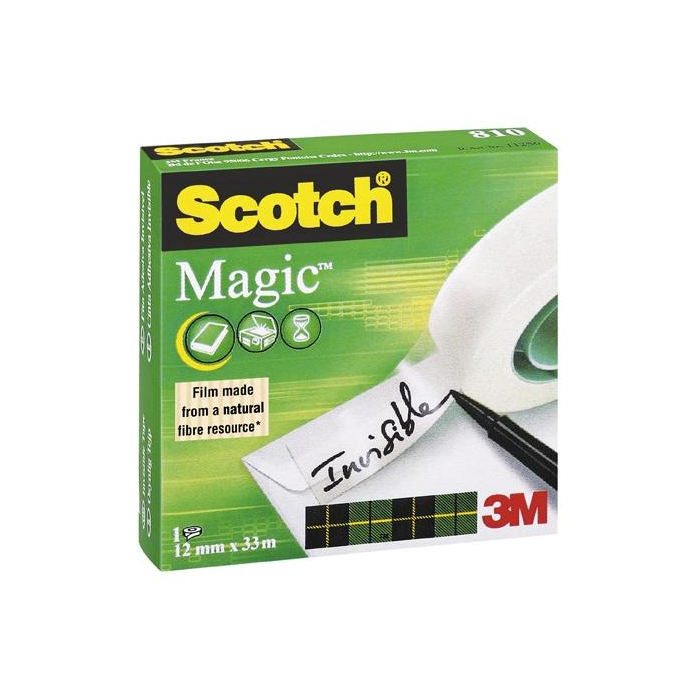 Neviditeľná lepiaca páska z prírodných vlákien. Jednoducho sa odvíja a strihá. Odolná voči starnutiu a pôsobeniu UV žiarenia. Popisovateľná perom, ceruzkou, značkovačom. Dodávaná v krabičke.