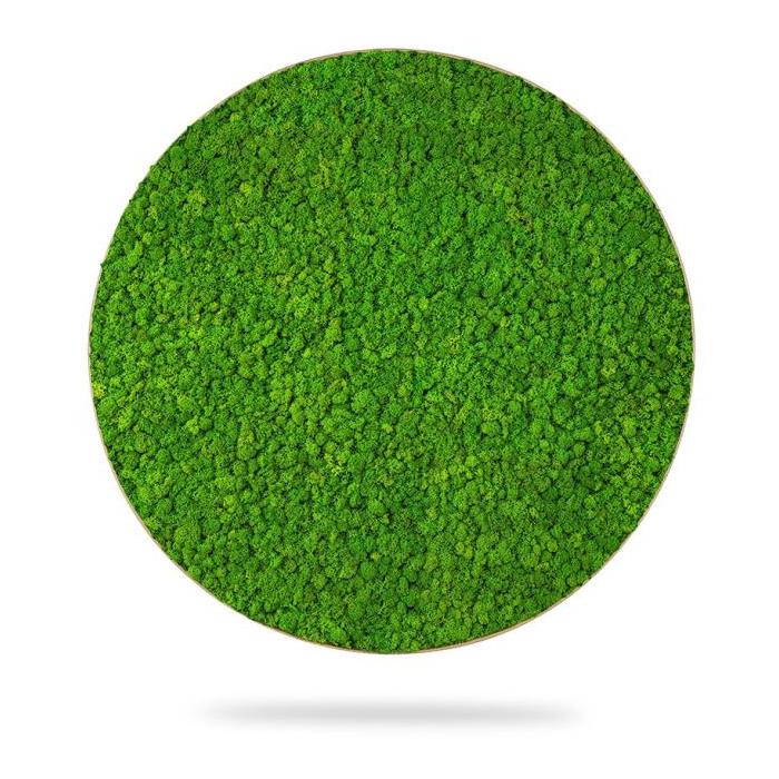 Machový obraz kruh LIŠAJNÍK mono GREEN, priemer 55cm, dubový rám