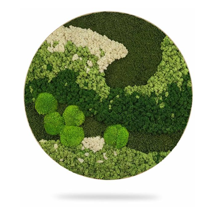 Machový obraz kruh ORTHO FOREST, priemer 55cm, dubový rám