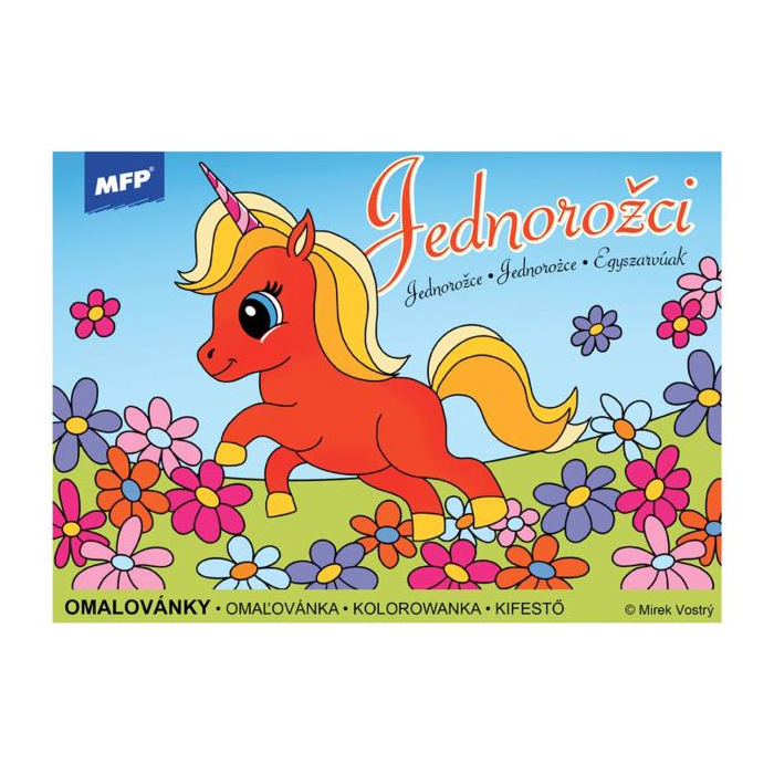 Maľovanky rozmerov A5.Jednorožci. Urobte si s deťmi pohodové popoludnie a vyfarbite si obrázok. Tieto omaľovánky sú jednoduché s veľkými obrázkami, takže sú vhodné aj pre najmenšie deti. Vyfarbovanie obrázkov pomôže rozvíjať celý rad zručností a schopností, najmä má veľký vplyv na jemnú motoriku
