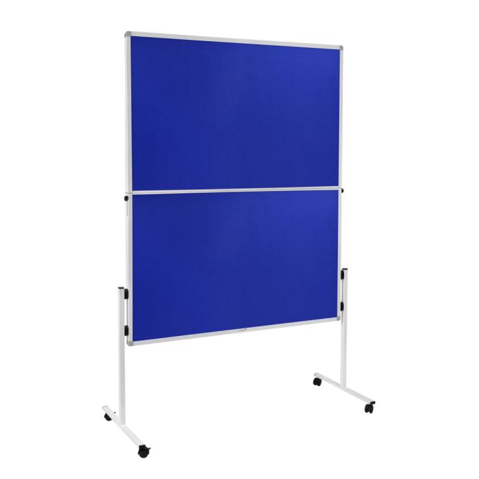 Model skladacej tabule WORKSHOP s hliníkovým rámom. Celková výška vrátane stojana 195 cm. Tabule sú obzvlášť vhodné pre využitie v priemysle. Súčasťou je návod na rýchlu a ľahkú montáž. Hmotnosť len 5,5 kg. Stojan dodáva tabuliam stabilitu, H‑profil zaručuje, že obe polovice tabule sú presne vyvážené. Úprava plstená. Farba modrá.