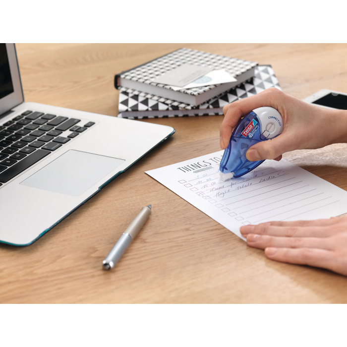 Náhradná náplň do praktického rollera v ergonomickom tvare s jednoduchým použitím na presné opravy s výstužou z PET proti pretrhnutiu. Farba dokonale kryje a okamžite priľne k podkladu. Po nanesení sa dá okamžite popisovať. Telo rollera vyrobené zo 100% recyklovaných plastov, náplň zo 61 % recyklovaných plastov. Neobsahuje rozpúšťadlá. Väčšie balenie 5 ks. Šírka stopy 8,4 mm. Návin 14 m.