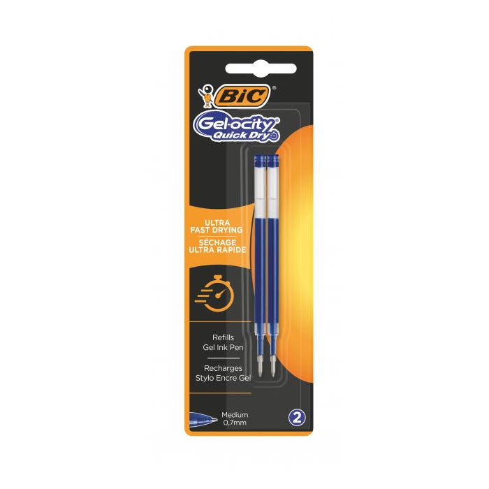 Náhradná náplň do gélového guľôčkového pera BIC Gelocity Quick Dry. Farba modrá. Balenie 2 ks.