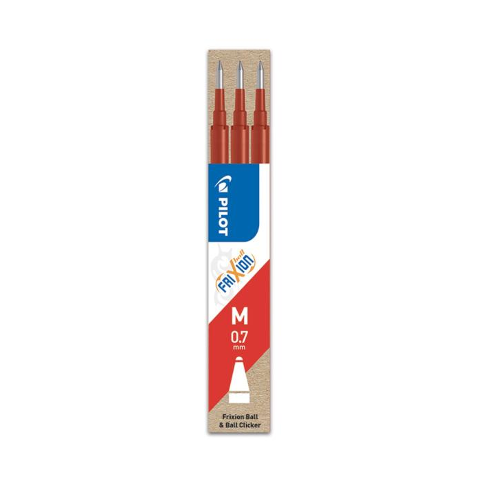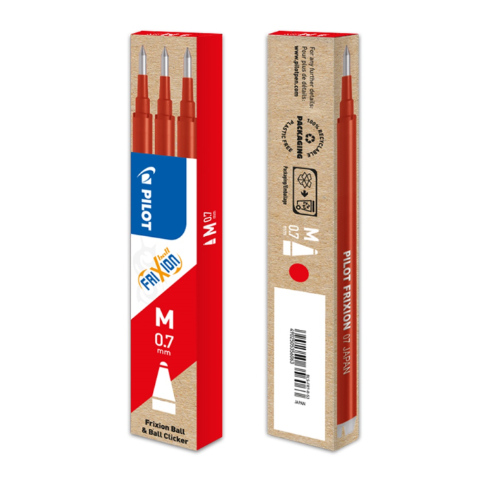 Náplň s prepisovateľným atramentom do rollerov Pilot FriXion Clickera FriXion Ball. V balení 3 ks. Gulička 0,7 mm.