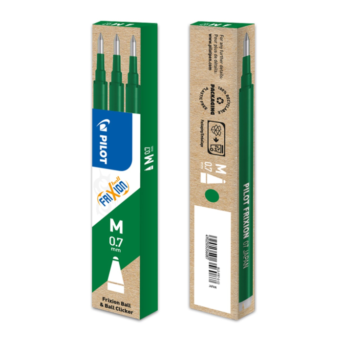 Náplň s prepisovateľným atramentom do rollerov Pilot FriXion Clickera FriXion Ball. V balení 3 ks. Gulička 0,7 mm.