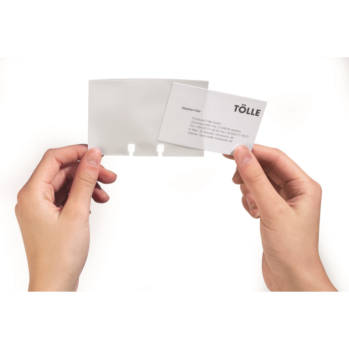 Náhradné balenie pre vizitkár VISIFIX cubo, FLIP VEGAS, FLIP duo VEGAS, VISIFIX Desk VEGAS. Obsah 40 obojstranných priehľadných vreciek na 80 ks vizitiek.