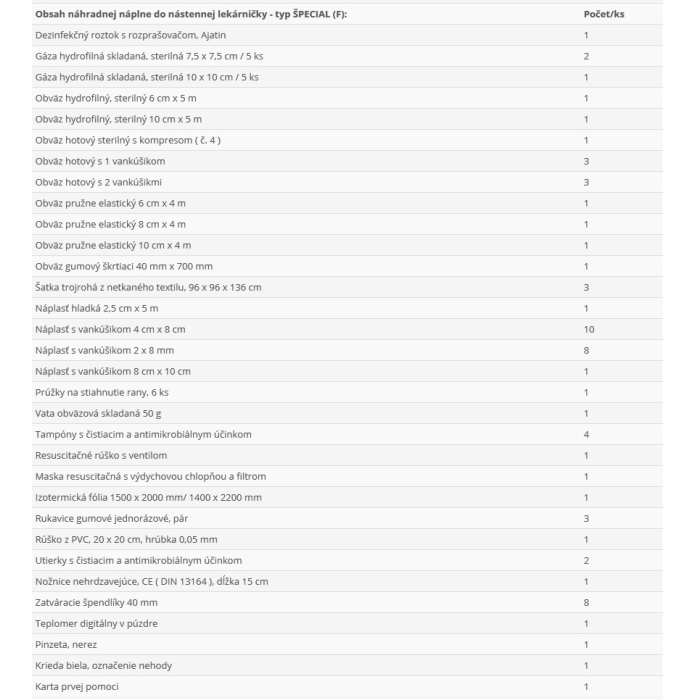 Náplň do lekárničiek Špecial (F)