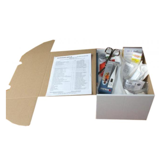 Náplň do lekárničky s rozšírenou výbavou, vhodná na pracoviská s vyššou mierou rizika úrazu, najmä na miesta so zvýšeným rizikom pádov a poranení, omrzlín, popálenín a i. Odporúčaná do výrobných podnikov, škôl, potravinárskych prevádzok, dielní, lakovní, autoservisov, opravárenských podnikov a pod.