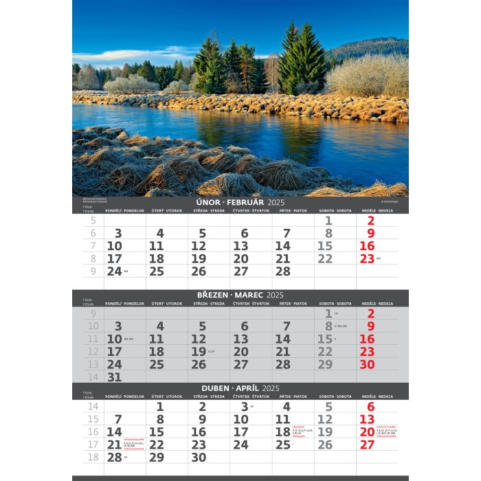 Kalendárium: české/slovenské trojmesačné so sviatkami európskych štátov (CZ / SK / A / B / D / F / H / CH / I / PL / RUS / UKR)