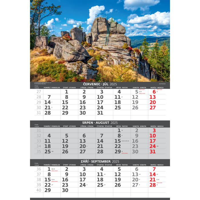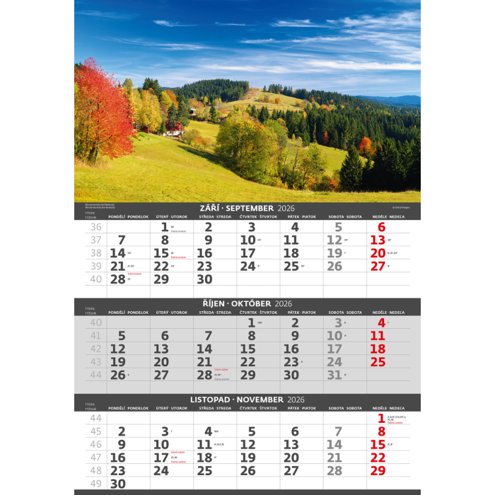 Nástenný kalendár 3-mesačný Hory 31,5 x 45 cm 2026