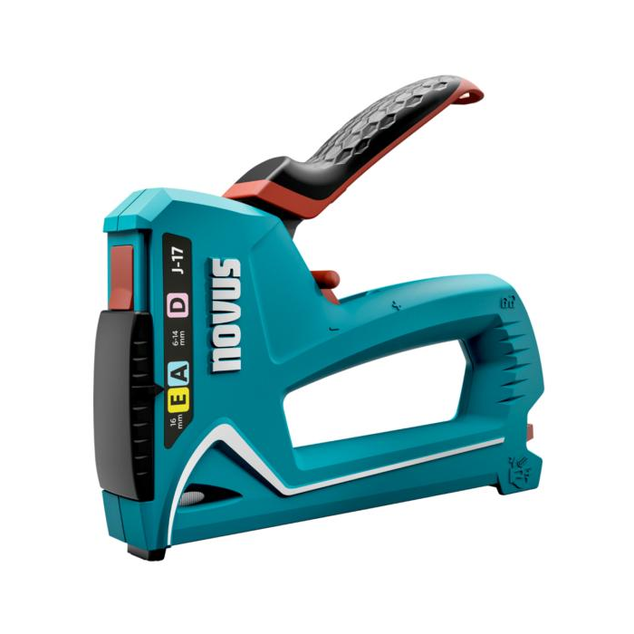 Veľká ručná nastreľovačka s vysokokvalitným plastovým krytom na univerzálne použitie, napr. na jednoduché upevnenie fólie, rýchle napnutie tkaniny do rámu a pod. Posuvný mechanizmus na ľahké prepínanie medzi tenkými spinkami a spinkami z plochého drôtu, ergonomická mäkká rukoväť, spodný plniaci zásobník s bezpečnostnou poistkou na ľahké plnenie spinkami, zámok rukoväte pre skladovanie, kontrolné okienko na sledovanie stavu naplnenia zásobníka. Kapacita: (A) spinky 150 ks, (D) spinky 85 ks.