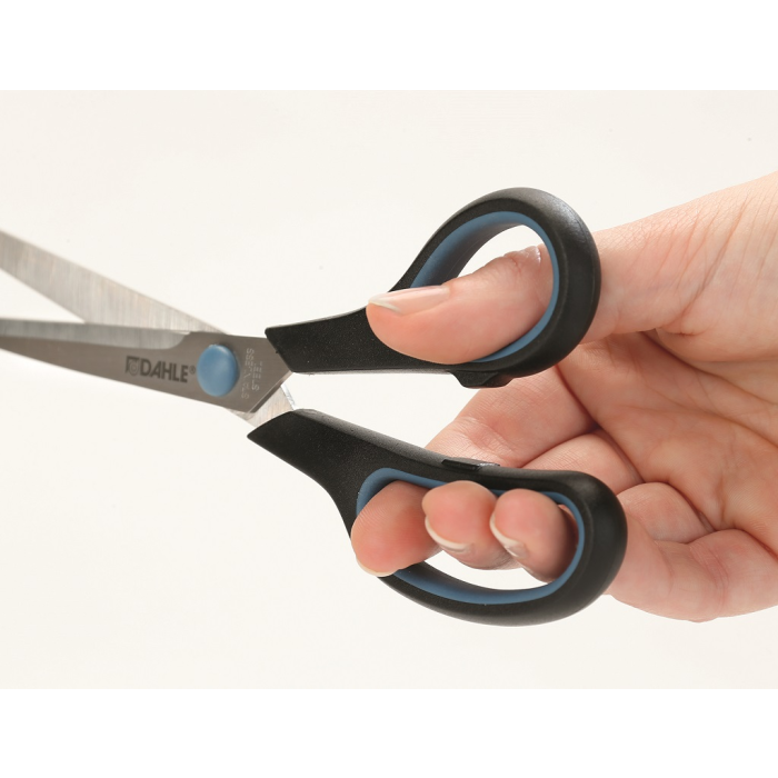 Nožnice s pohodlným úchopom a mäkkými rukoväťami s gumovou podšívkou. Nehrdzavejúca, špeciálne kalená oceľ nožníc pre dlhú životnosť. Brúsené čepele nožníc pre dlhotrvajúcu ostrosť. Vysokokvalitné polypropylénové rukoväte perfektne padnú do ruky. Mäkké rukoväte s gumovou podšívkou pre pohodlie pri strihaní. Farba čierna/modrá. Veľkosť: 20 cm