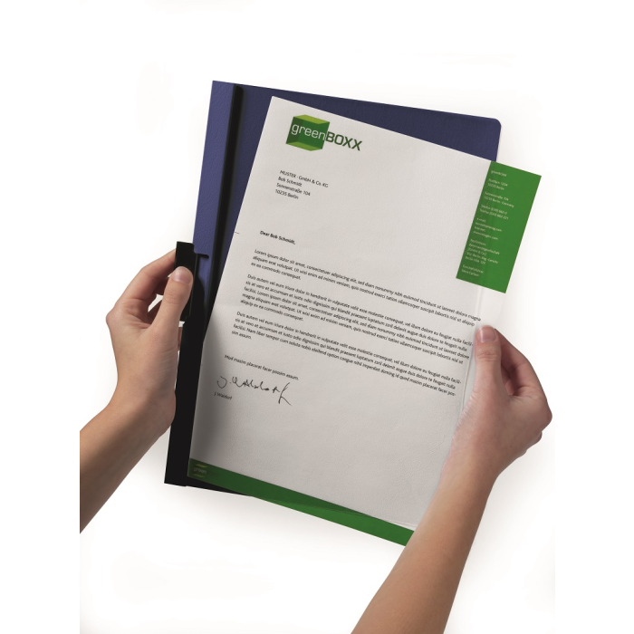 Obal vyvinutý spoločnosťou DURABLE pre viazanie nedierovaných listov. Materiál z PVC s unikátnym kovovým klipom, ktorý sa prispôsobí vloženému počtu listov a priehľadnou prednou stranou. Ideálny na prezentácie, ponuky, správy, poznámky na konferencie, semináre a pod. Formát A4. Kapacita 1-30 listov. Väčšie balenie 25 ks.