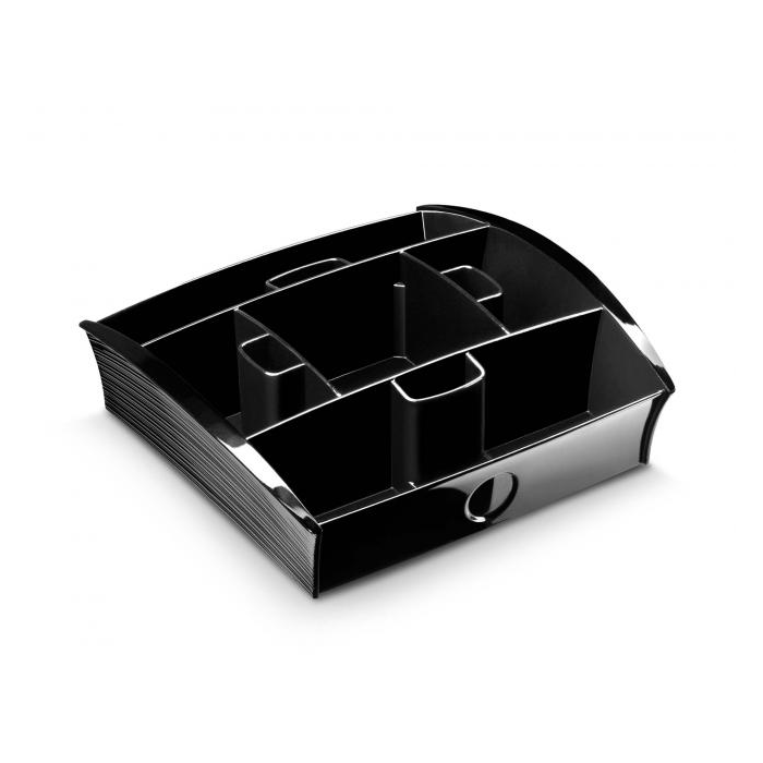 Kľúčom k vúcnemu privítaniu a priateľskému stretnutiu bude tento zásobník, ktorý ponúkne každému pestrý sortiment - čaj, kávu, čokoládu, mlieko, cukor, miešadlá a lyžice. Tento organizér potom môže byť z dôvodu úspory miesta a minimálneho zásahu do priestoru kuchyne veľmi šikovne uložený v hornej časti maxi modulu vedľa kávovaru,či varnej kanvice. Vyrobený zo 100% recyklovateľného polystyrénu, ktorý je certifi kovaný na bezpečnosť pre potraviny. Rozmery (š × v × h) 205 × 216 × 68 mm. Farba čierna.
