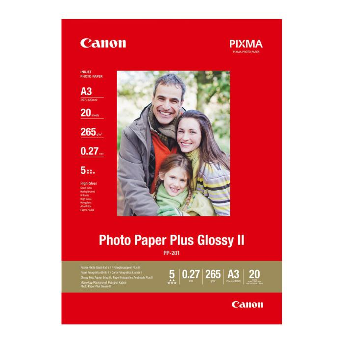 Canon Photo Paper Plus Glossy II, foto papier, lesklý, biely, A3, 265 g/m2, 20 ks, PP-201 A3, atramentový.