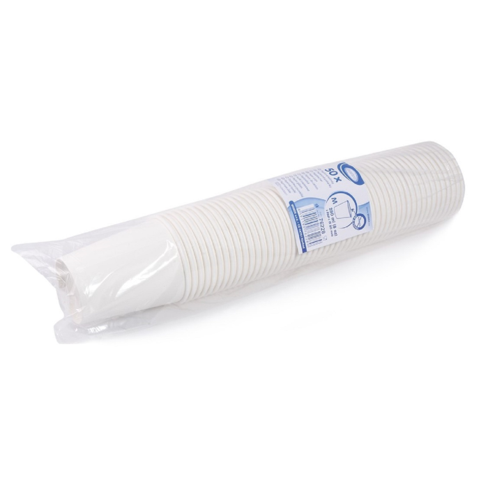 Jednorazové papierové poháre. Objem 280 ml, vhodné pre nápoje s objemom 0,2 l, dodávané hygienicky balené po 50 ks. Farba biela.