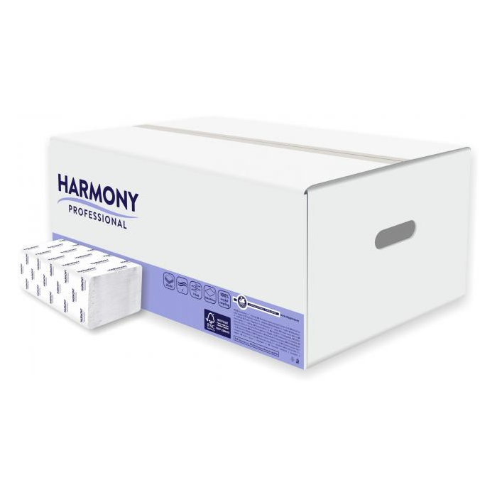 Papierové uteráky Harmony Professional. Útržkov v balení: 150 Počet útržkov v kartóne: 3000 Počet balení v kartóne: 20 Materiál: biely recyklát, počet vrstiev: 2 Dĺžka útržku: 230 mm Šírka útržku: 240 mm