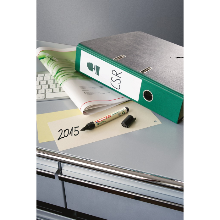 Permanentný popisovač vhodný na trvanlivé popisovanie, značenie, maľovanie a vyznačovanie takmer na všetky materiály, dokonca na kov, sklo a umelú hmotu. Minimálne 80 % plastovej časti je vyrobených z recyklovaného materiálu. Okrúhly hrot, šírka stopy 1,5 - 3 mm. Rýchloschnúci, vodeodolný, slabo zapáchajúci atrament intenzívnej farby bez obsahu toluénu/ xylénu. Väčšie balenie 10 ks.