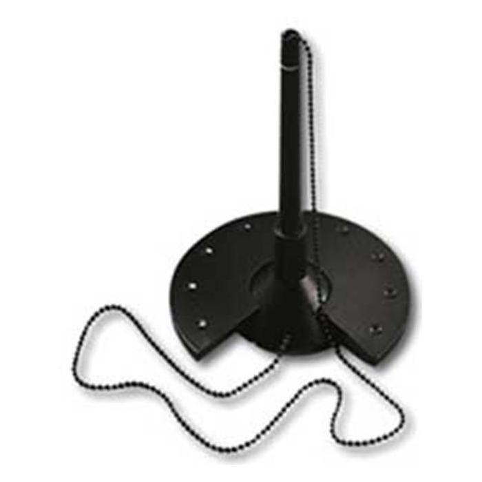 Pero s pochrómovanou retiazkou, spojenou s kruhovým podstavcom. Farba náplne čierna.