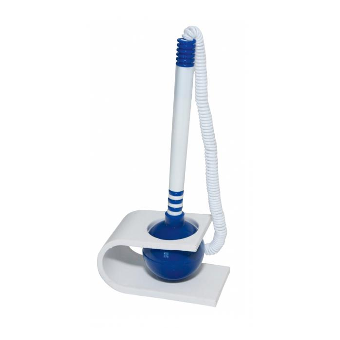 Plastové pero moderného dizajnu na stojane so stabilnou prilepovacou základňou, spojené plastovou pružinkou. Vhodné pre verejné miesta, ako sú pošty, recepcie, kancelárie, sekretariáty a pod. Väčšie balenie 50 ks.