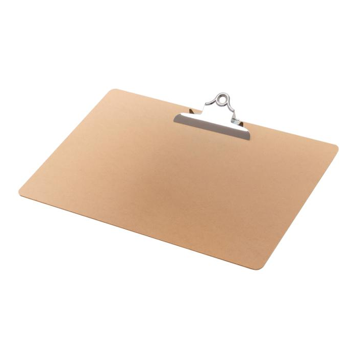 Stabilná písacia podložka A3 zo sololitu s masívnym nostalgickým oceľovým klipom so silnou pružinou s možnosťou zavesenia. Neošetrený povrch pre prirodzený vzhľad s jemne zaoblenými hranami. Ideálna aj do výloh alebo recepcií alebo pre menu v reštauráciách. Rozmery 45 x x 32 x 4,2 cm, hrúbka podložky cca 0,3 cm, kapacita klipu cca 2,5 cm, hmotnosť 0,42 kg. Podložka je recyklovateľná. Formát A4. Farba hnedá.