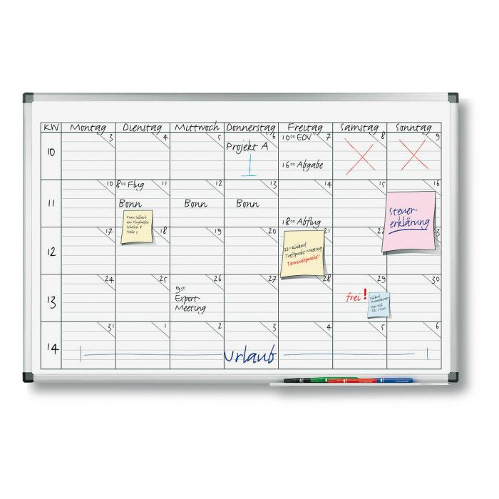 Tabuľa s popisovateľným magnetickým a špeciálne lakovaným a UV tvrdeným povrchom vo verzii týždňového plánovača pre 5 ľudí/ projektov alebo pre jedného človeka na obdobie 5 týždňov. Veľký priestor pre informáciu. Rozmery denného okna 110 × 120 mm. Magnetický popisovateľný povrch. Sada príslušenstva zahrňuje 4 stierateľné popisovače TZ 111 a 8 okrúhlych magnetov priemeru 25 mm.