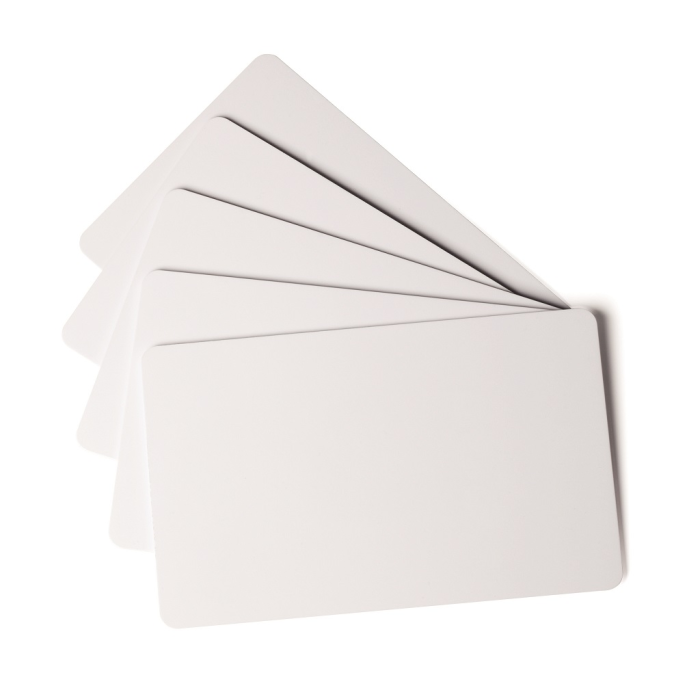 Plastové karty do tlačiarne DURACARD ID 300 Plastové karty tenké v hrúbke 0,5 mm na potlač plastových kariet v tlačiarni DURACARD ID 300. Rozmery 53,98 × 86,60 mm.