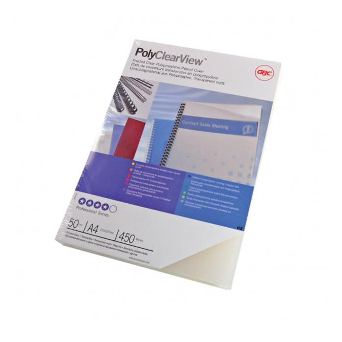 Viazanie dokumentov ešte nikdy nebolo jednoduchšie. Predné obálky pre tepelnú väzbu PolyClearView™ sú robustné a priehľadné a sú určené pre zvýraznenie a ochranu titulných strán. Recyklovateľné obálky sú ohľaduplné k životnému prostrediu než štandardné priehľadné obálky z PVC. Farba matná priehľadná. Hrúbka 450 mikrónov. Formát A4. Balenie 50 kusov.
