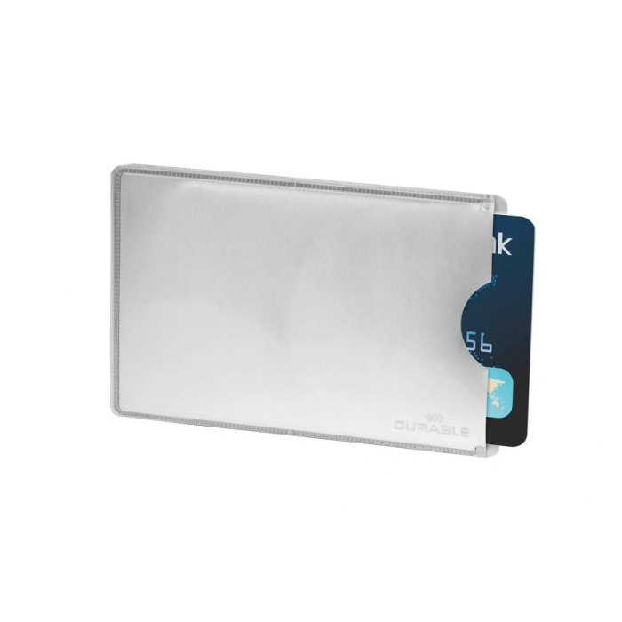 Ochranný obal na 1 RFID kartu, ktorý kartu chráni pred neželaným čítaním údajov. Vnútorné rozmery 86 × 54 mm, vonkajšie rozmery 90 × 61 mm. Farba metalická strieborná. Balenie 10 ks.