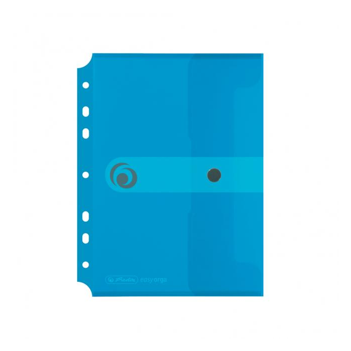 Plastové obaly Herlitz Easy Orga z priehľadného PP s uzatvárateľnou klopou s cvočkom a eurodierovaním. Formát A5, kapacita 200 listov. Farba priehľadná modrá.
