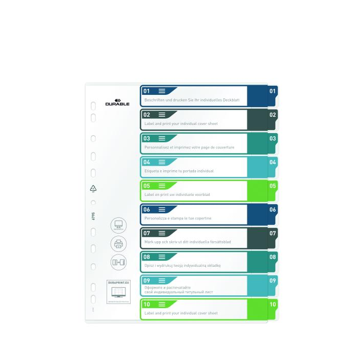 Plastový rozraďovač DURABLE 1-10 potlačiteľný farebný